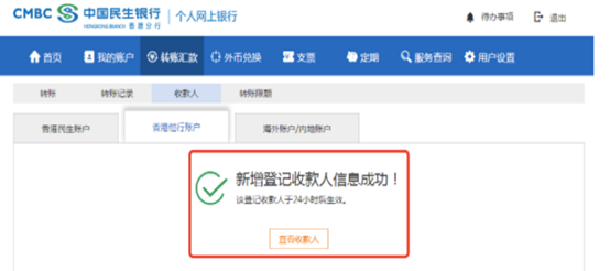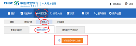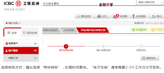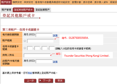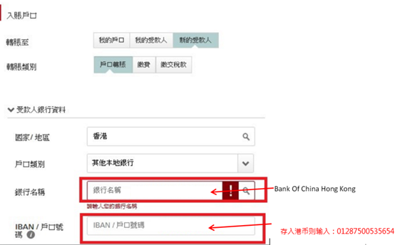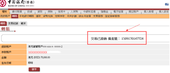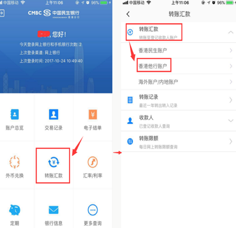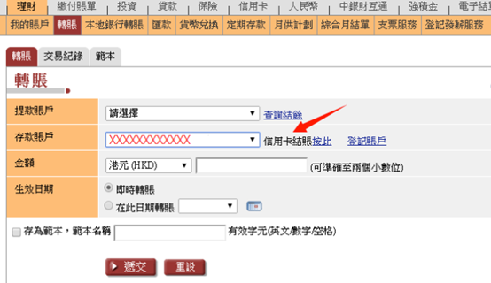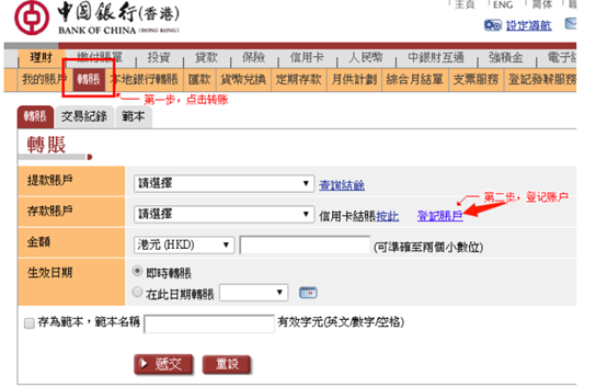 3. 選擇“銀行服務—轉帳—港元轉至港元戶口—轉帳至其他銀行戶口—特快轉帳”