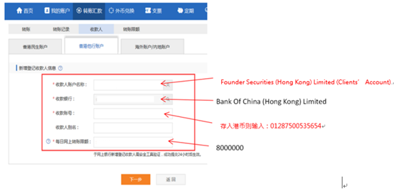 5.截圖匯款憑證,填寫入金申請表(方正香港m.hmddc.com.cn官網(wǎng)——客戶服務——下載表格——資金存取表格),發(fā)送給銷售或客服cs@hkfoundersc.com